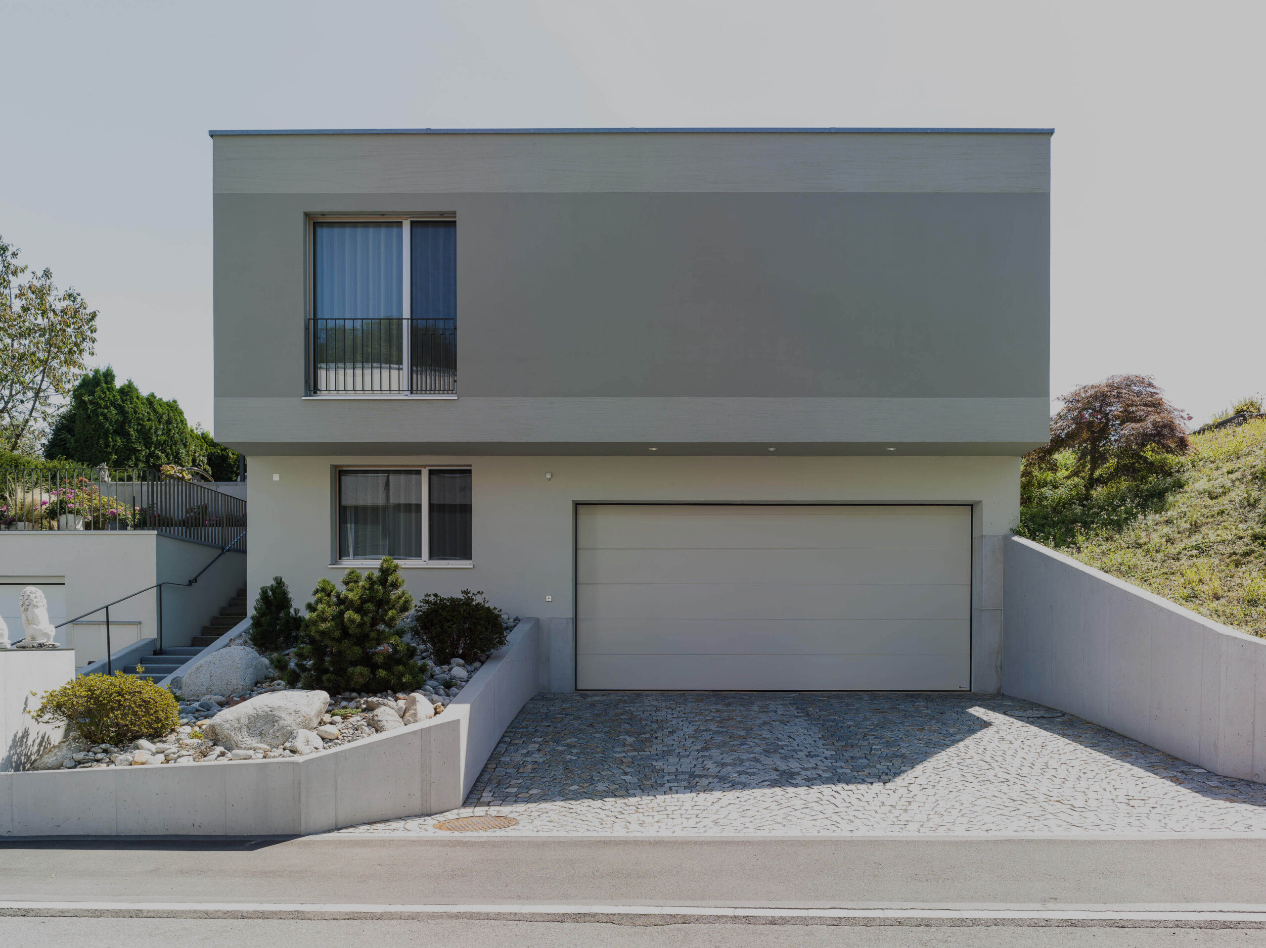 Das bestehende Einfamilienhaus aus den Siebzigerjahren sollte um eine Doppelgarage ergänzt, Nasszellen erneuert und die Hülle energetisch ertüchtigt werden.